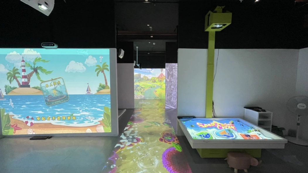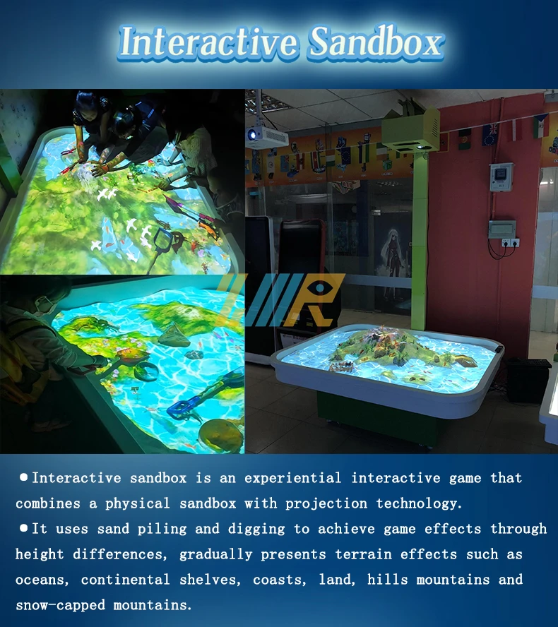 Product Introduction | ●The interactive sandbox projector combines entity sandbox with projection technology, using stacking and digging sand to achieve game effects through height differences. ●Includes 5 virtual interactive games with height differences, where children build their own camps to fight by digging and stacking sand. ●Applicable to: children's playground facilities, amusement park, park, parent-child interaction site, shopping mall and other multimedia interactive places. |