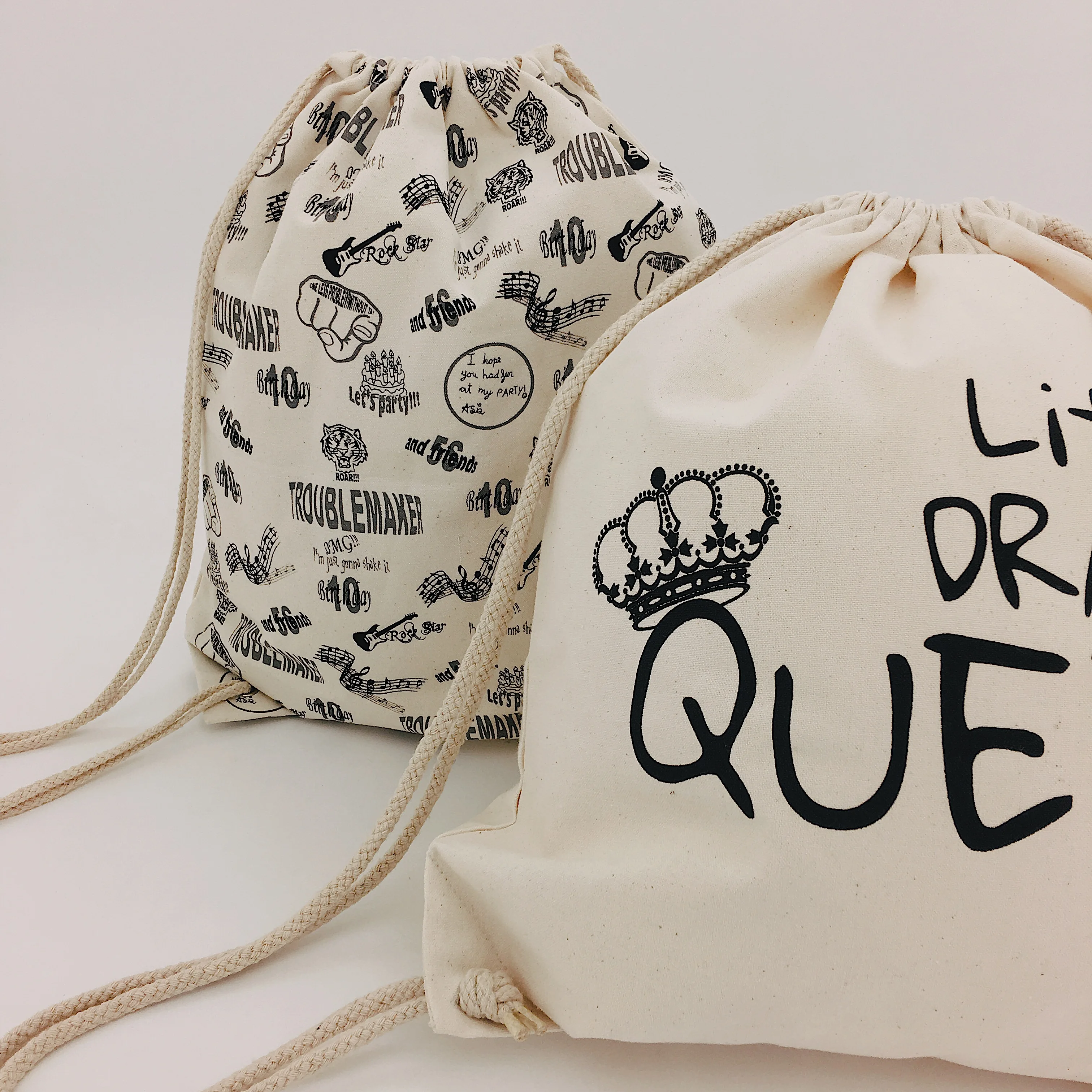 Wholesale Promotional Custom Print Organic Cotton Fabric Drawstring Bag