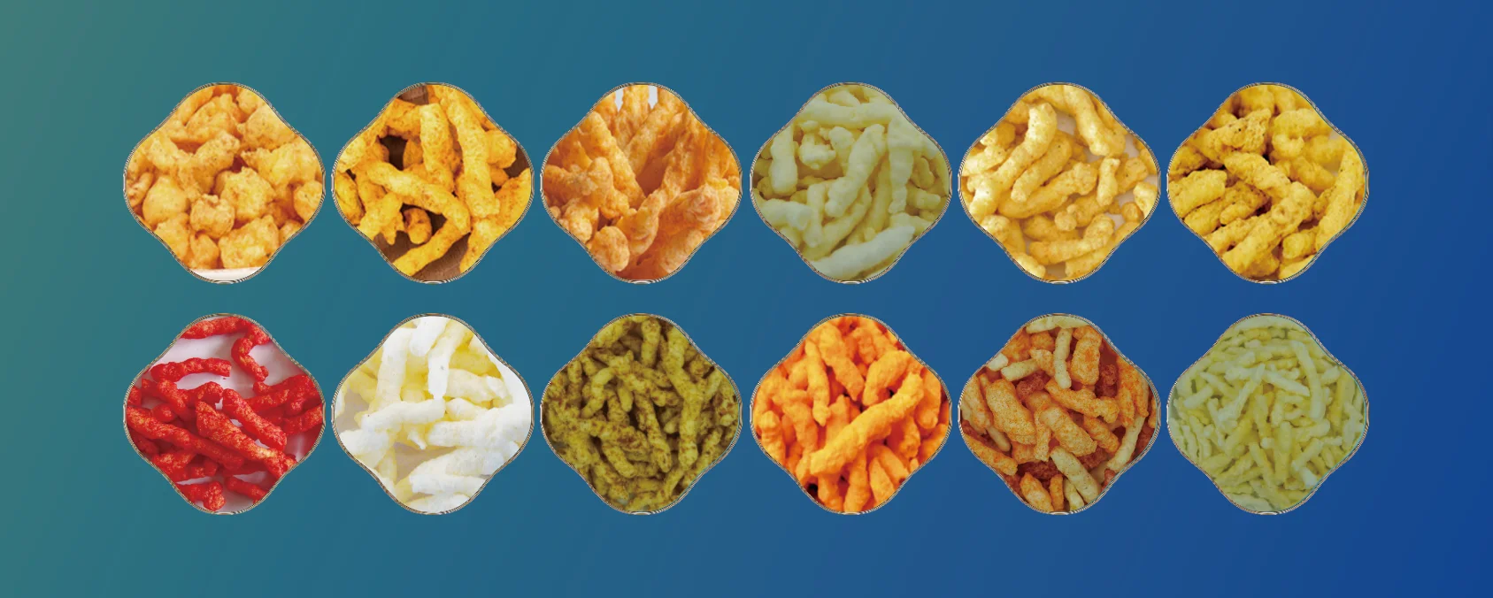 Kurkure/Cheetos/ Niknak are kind of special extruded snacks, very crunchy and delicious. They are made by a special extrusion process. The corn grits are moisturized by water in the flour mixer and fed to the rotary head extruder. In the extruder, due to the rubbing of two rotary plates, the corn grits are squeezed and twisted into curls shapes. The snack is then fried or baked to give it its crunchy texture and flavor. Once cooled, it is coated with a seasoning, such as cheese or spicy flavors, to give it its final flavor.