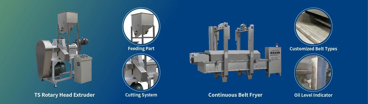 A: We are able to supply kinds of food machines, including breakfast cereal, corn flakes, tortilla chips, bugles, fried snacks, potato chips and etc. It will complete the solution from A to Z.