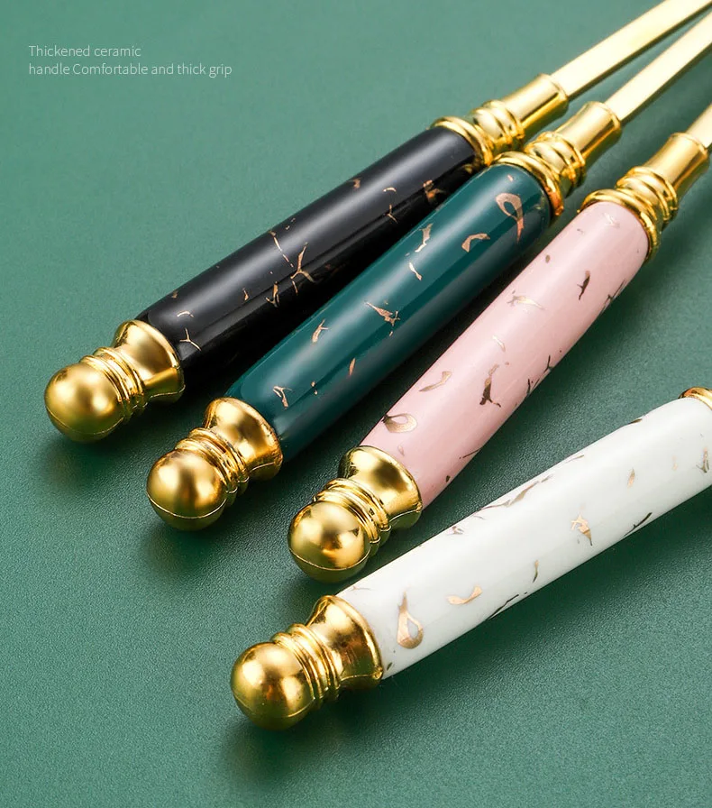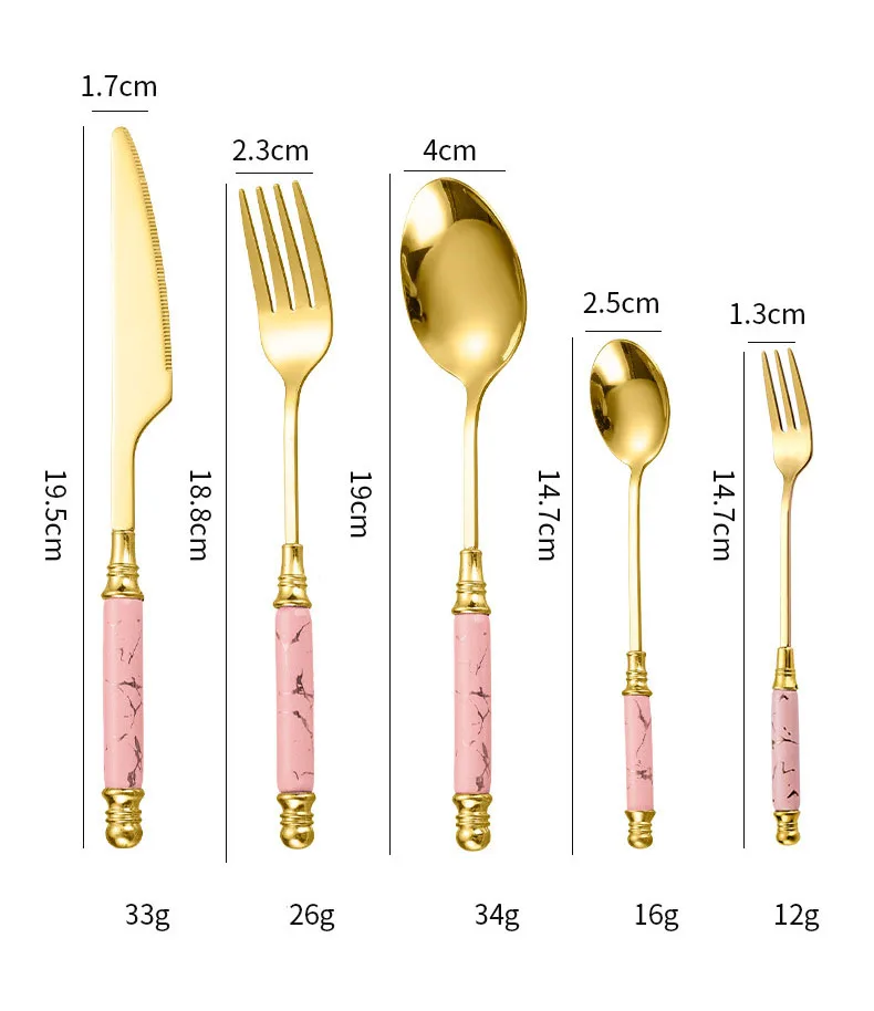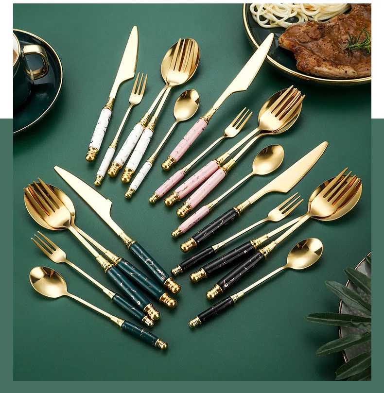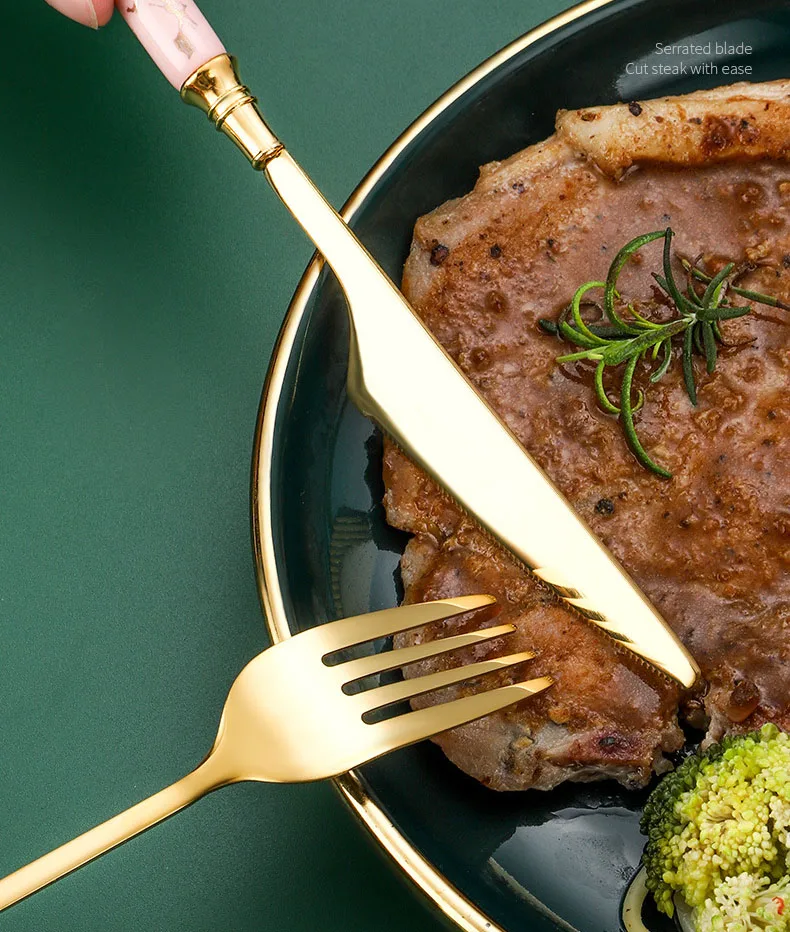 Retro European Style Stainless Steel Gold Plated Cutlery Dinnerware Knife Spoon Fork Flatware with Ceramic Handle