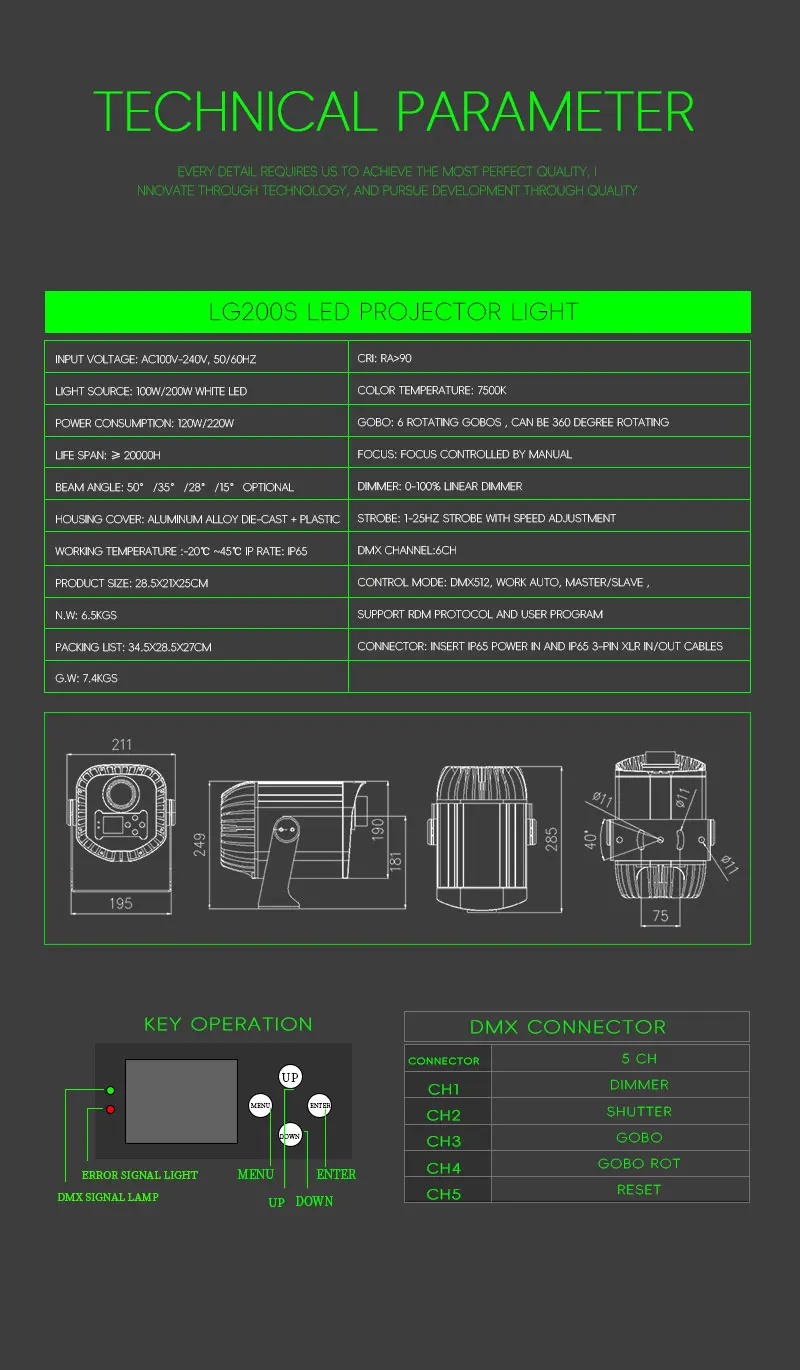 The main products include: ARC Moving head light; LED Moving Head Light; LED Wall Washer; LED Par Light; Stage Effect Light;Outdoor Sky Search Light etc. With advanced production technology and the trend of the times, the design concept of the times, combined with high-quality production materials and excellent product quality, has established a good brand reputation.