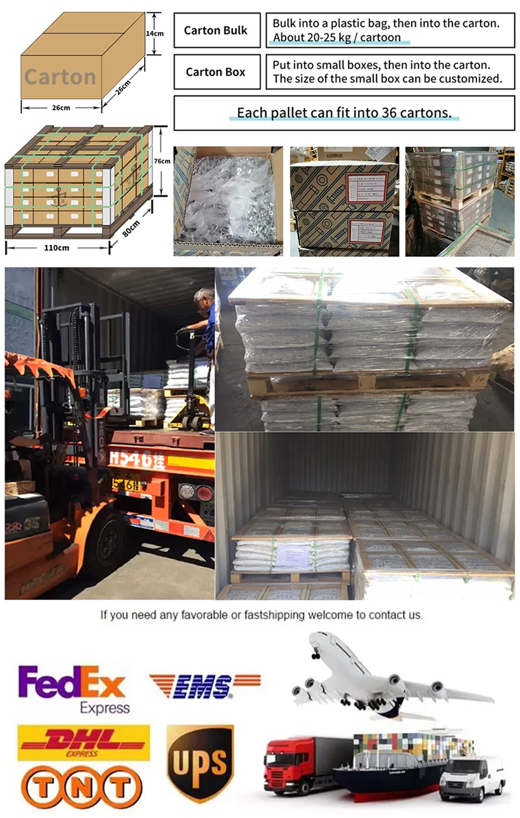 Package | Carton bulk, Carton box, Pallet, etc. |