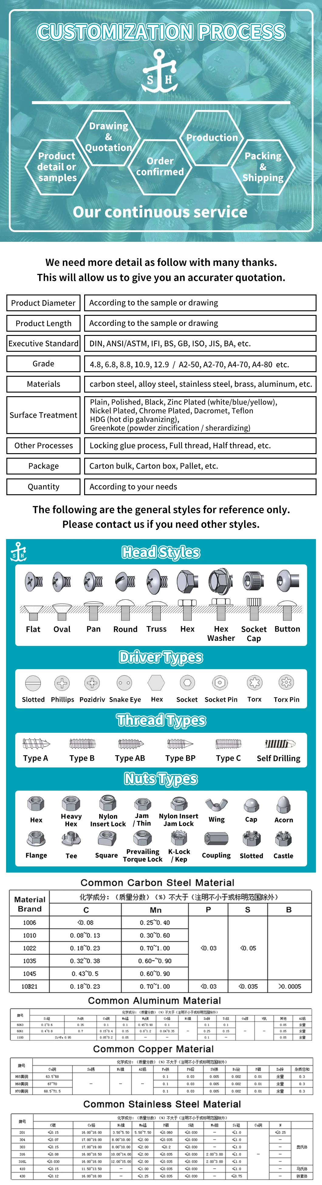 Executive Standard | DIN, ANSI/ASTM, IFI, BS, GB, ISO, JIS, BA,etc. |