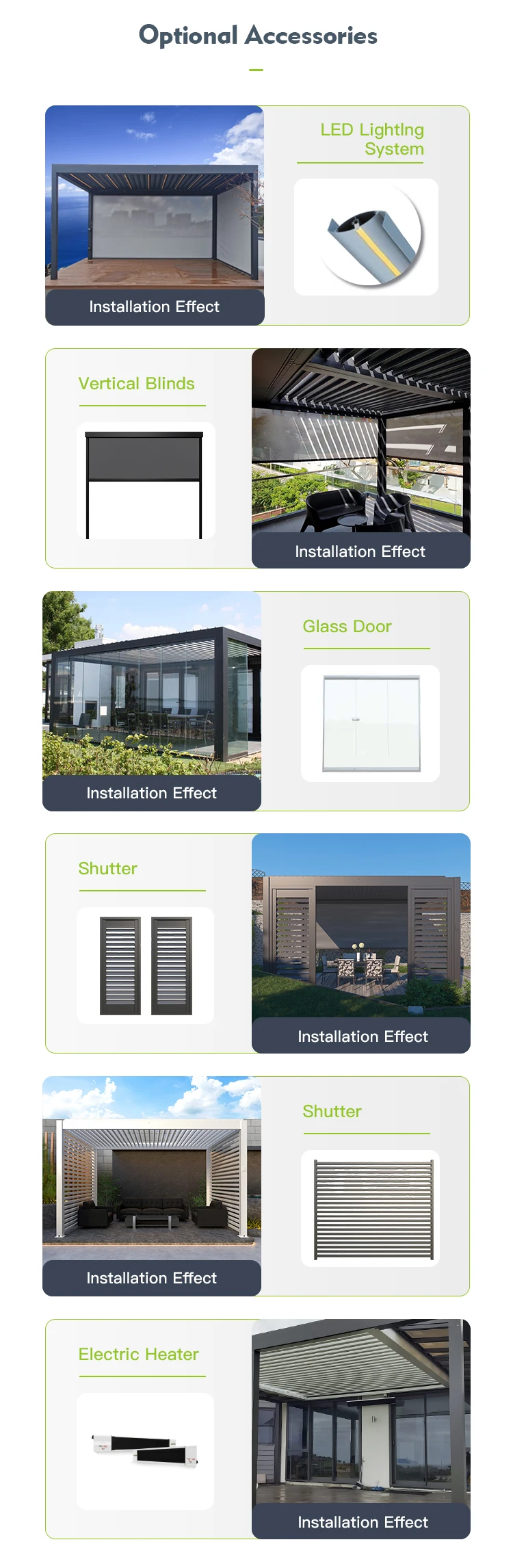 Optional Accessories | Side Screen/ LED Light/Wind & Rain Sensor/Heater,etc | ||||||