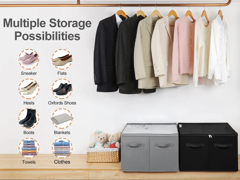 Adjustable partition design of storage bin also helps you organize various items like clothes, handbags, books, blankets, towels, toys, shampoo, and more.