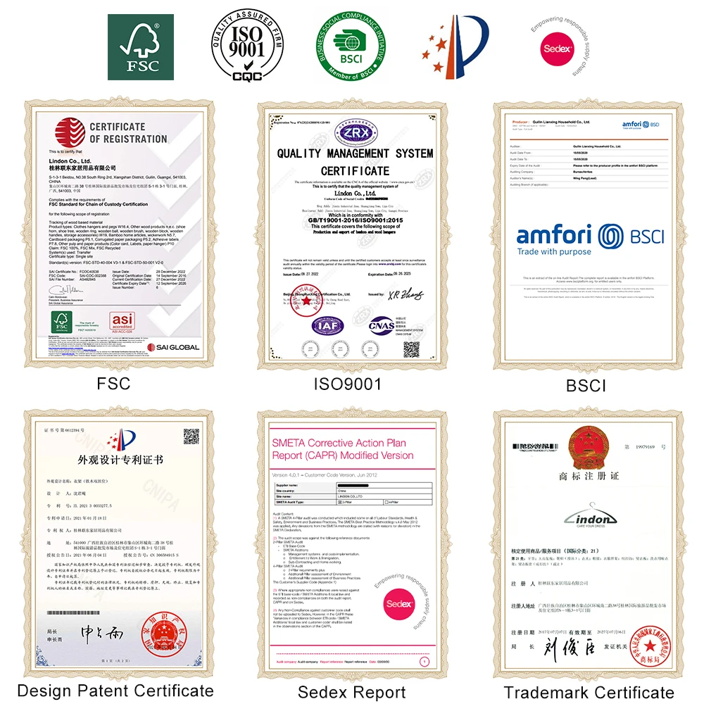 1. Our factories are specialized in manufacturing hangers and storage product more than 20 years. 2. More than 20 years of hangers and storage product' exporting experiences 3. Competitive factory direct sales price 4. QC will control the quality in the whole production process. 5. Member of BSCI & SEDEXaudited; FSC certified;ISO9001/SGS/TUV /Intertek/ BV tested.