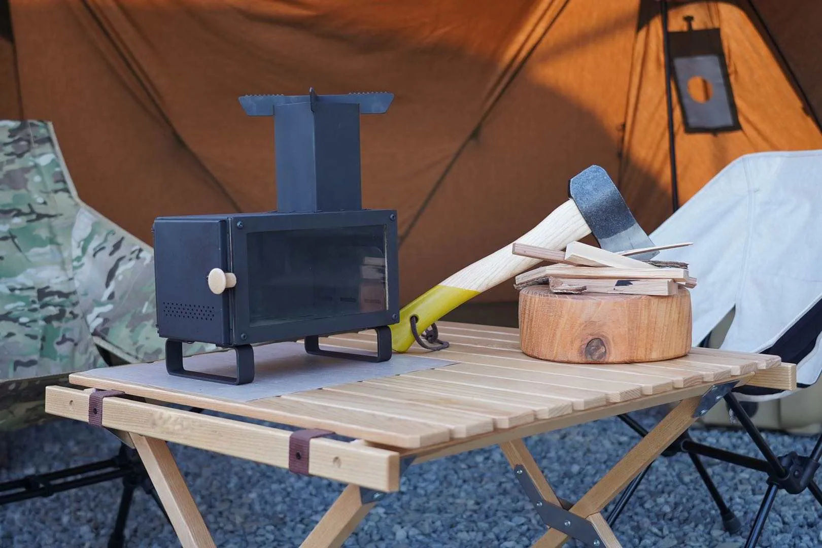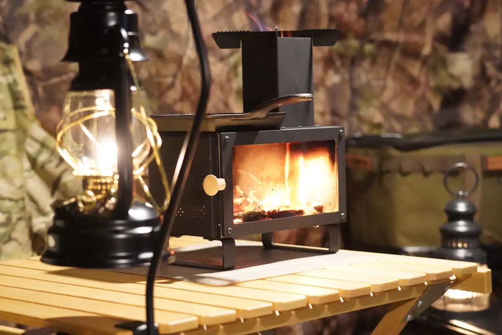 This camping stove can be used in tents for heating, outdoor cooking, and boiling water.