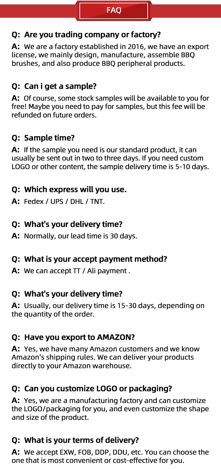 For large quantities, we provide custom services as below: