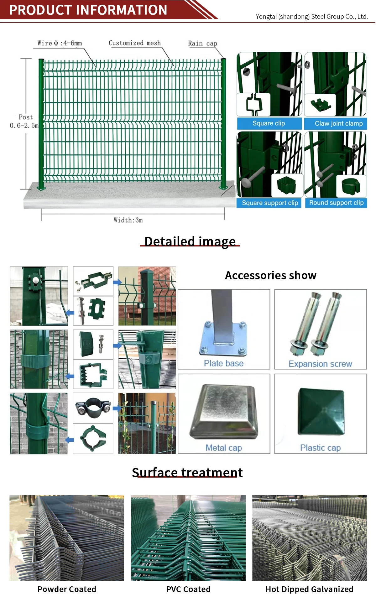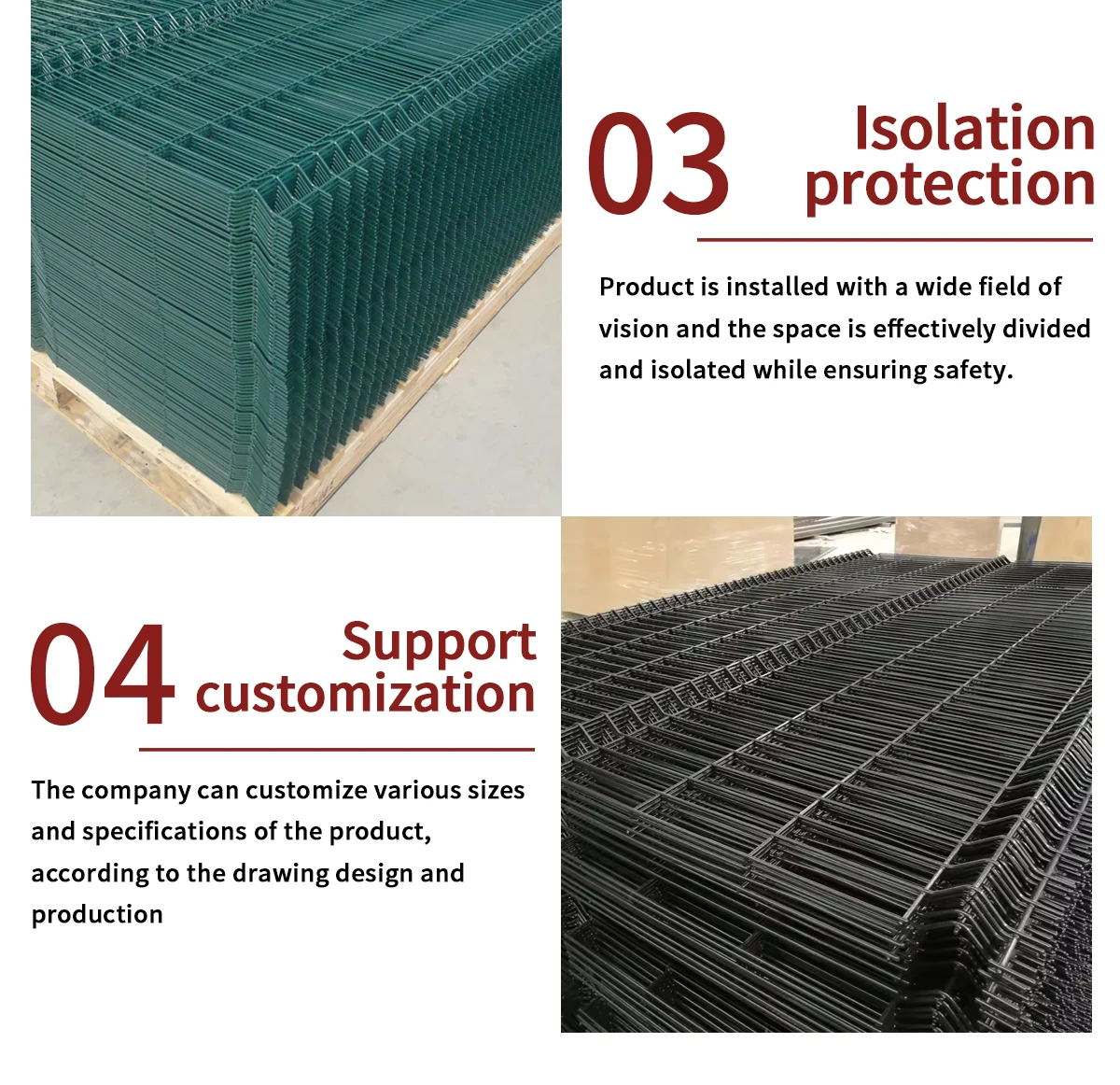 Fence Height(cm) | Panel Width | Wire Diameter | Double Wire Type | Mesh size(mm) | Folds No | Post style | Post size(mm) | Post Length(cm) |