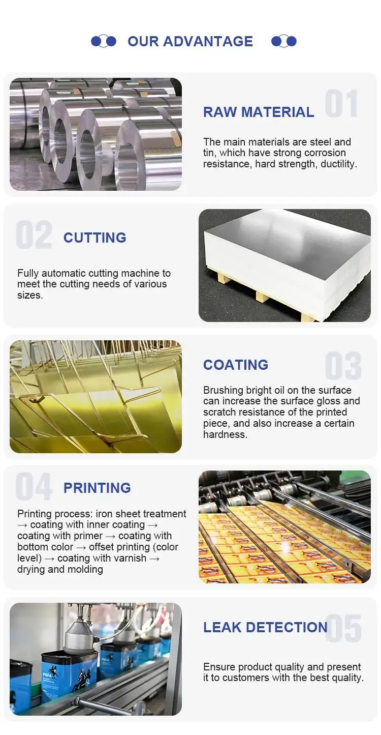 Capacity | Size(D/d*H)mm | Thickness;0.32mm-0.5mm Match different handle, based on customer requirements, Japanese style, European style, and plastic handle. Our minimum MOQ is 1000 pcs for each printing style, and can accept multiple styles of imposition printing. We can make UN and non-UN tin cans, according to customer requirements. |