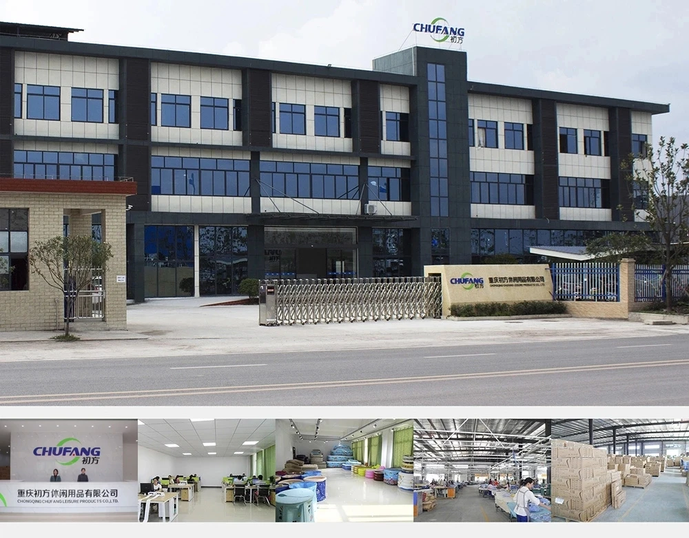 Chongqing Chufang Leisure Products Co., LTD., established in June 2016, is located in Chongqing Liangping Industrial Park and boasts a registered capital of 20 million yuan. Our facilities cover an expansive area of over 13,000 square meters, encompassing dedicated spaces for product research and development, e-commerce operations, and office premises spanning more than 3,000 square meters. Additionally, our production plant and other construction areas occupy over 9,630 square meters. Equipped with cutting-edge machinery including large high frequency hot melt machines ranging from 200KW to below 100KW across various equipment types, we proudly stand as one of the nation's leading indoor and outdoor leisure products enterprises that seamlessly integrates production capabilities with research and development expertise alongside sales proficiency.