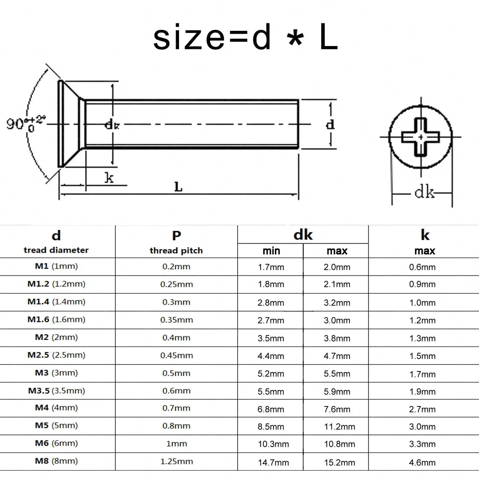 SDPSI DCT 50pcs M1 M1.2 M1.4 M1.6 M2 M2.5 M3 M3.5 M4 GB819 Mini Small Black Carbon Steel Cross Phillips Flat Countersunk Head Screw Bolt
