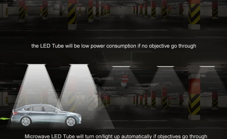 1,Radar sensor LED tube is designed for car park, warehouse and other special area, which can be dimmable intelligently according to the moving objects