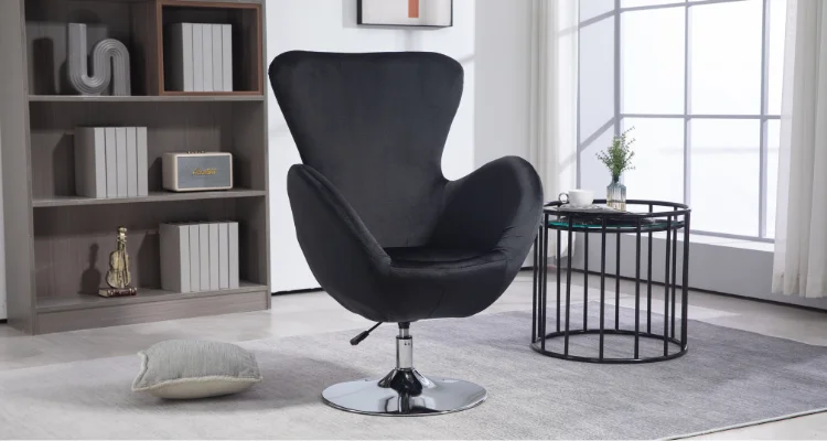 Feature | This classic eggshell chair is undoubtedly an iconic piece. Fluid lines imbue a sense of movement that is seen as part of the organic functionalism movement. No frills, simple and elegant, and undoubtedly very comfortable. This leisure chair has fabric upholstery, velvet fabric, and a semi-circular design that is ergonomic. It can also be rotated 360°. You can use it for office or leisure time. It is a very good choice. Its derivative model 6069B has more colors and is full of vitality. |