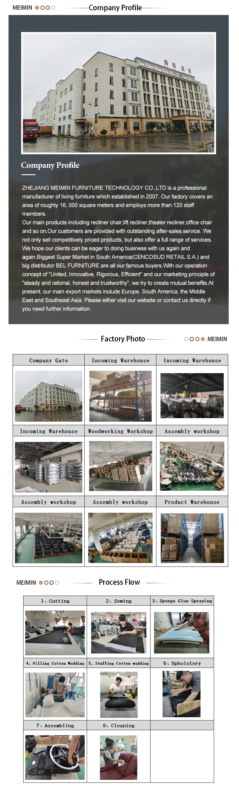 2.Supply different kind of products, including office chair, leisure chair, cinema sofa & recliner sofa etc. | ||||||||