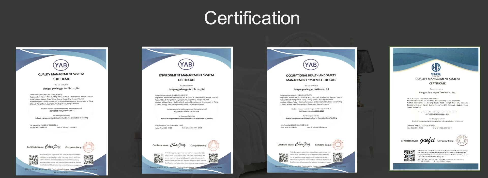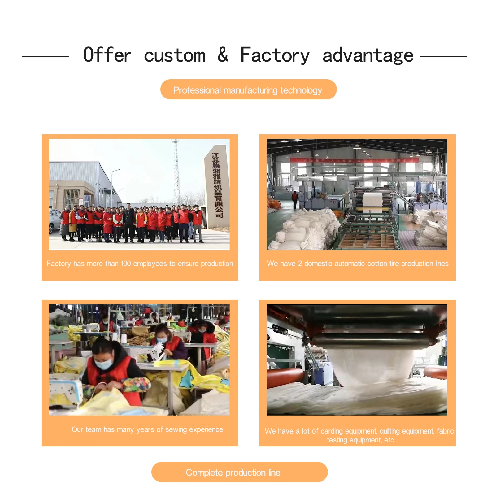 Guangzhou Gexiangya Textile Co., Ltd. Established in 2012.Our company has its own factory, an area of more than 30,000 square meters, more than 100 employees, we have a variety of carding, quilting equipment and fabric testing equipment. We are currently supplying hundreds of kindergartens, primary schools and secondary schools with bedding sets of good quality at good prices and have received very good feedback. We have obtained quality inspection certificate, product safety and health, Our sewing masters have decades of experience and are highly skilled. Custom services are available,Fabric, size, logo, color can be customized. We have stable suppliers that can meet the needs of large orders.