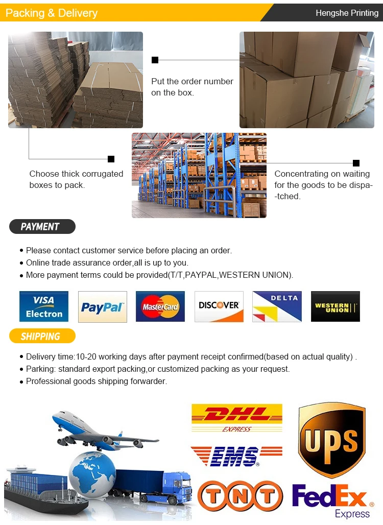 Finish Processing | Glossy/Matt Varnish, Glossy/Matt Lamination, Gold/sliver foil stamping, Spot UV, Embossed, etc. | ||||||