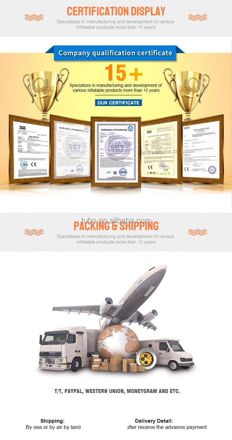 Accessory | 1. 110v~220v Pump or Blower: with CE/UL certificates. 2. Repair kits and glue: repair the balloon when broken. |