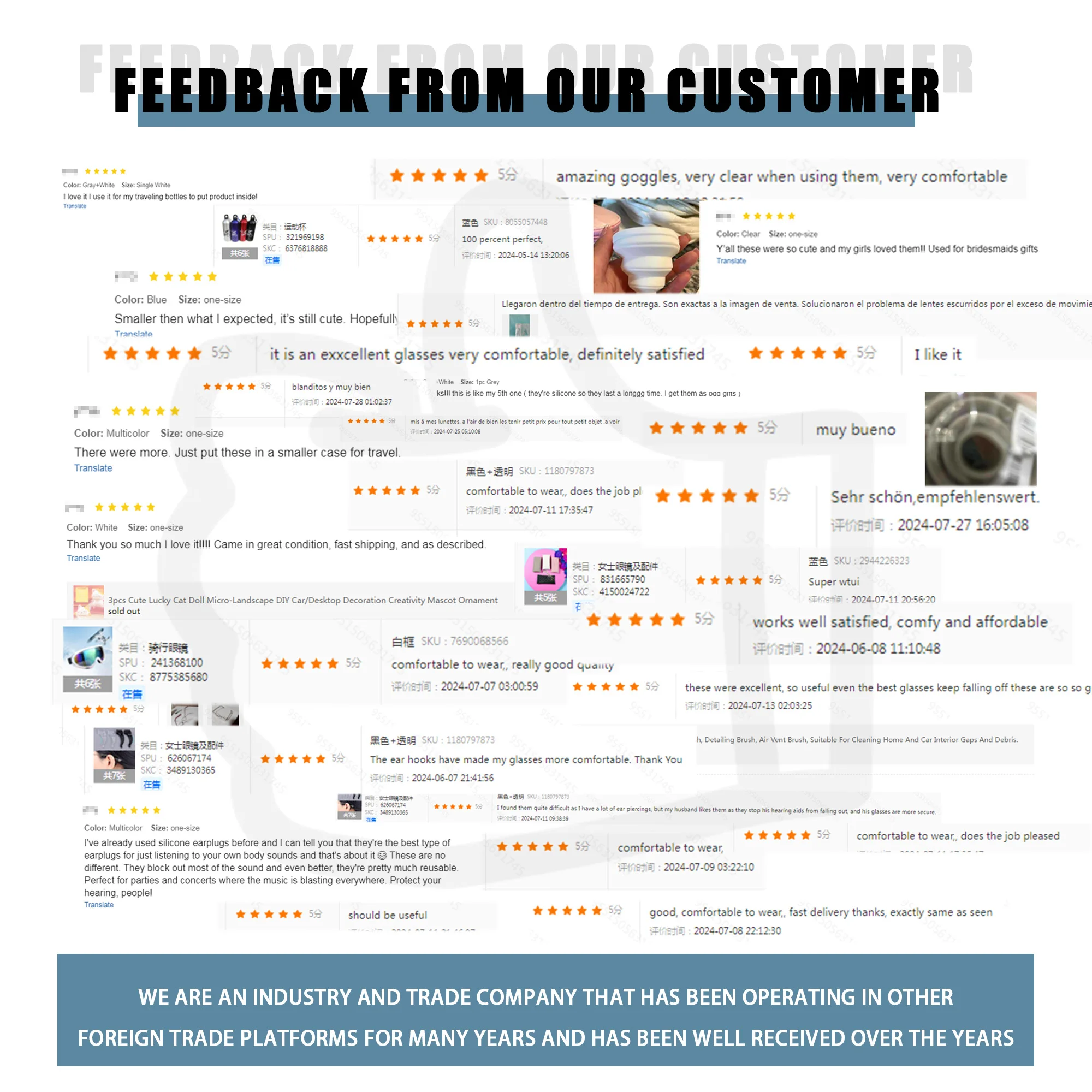 Established with the mission to provide high-quality goods and services to customers worldwide, our company operates in a wide range of product categories, including Home & Garden, Sports & Outdoors, Electronics, Arts & Crafts, Health & Beauty, and more. We diligently source the best products and continually strive to meet the ever-evolving needs of our customers.