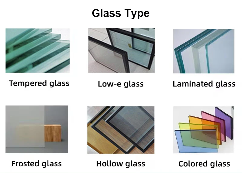 3)Type of glass and thickness (single or double or laminated or others) and color (clear, tinted, reflective, Low-E or others,with Argon or without).