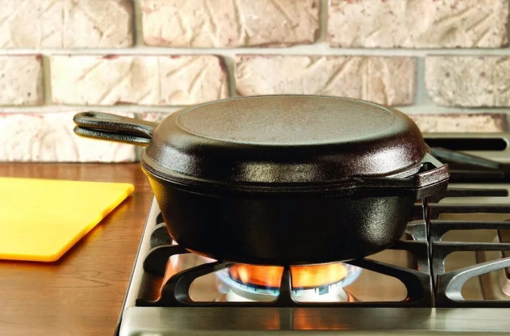 1. The Non-stick Double Used Iron Casserole 2-in-1 Cast Iron Covered Black Dutch Oven allows you to avoid the toxic fumes that accompany most cookware. Cast iron can also replace aluminum cookware, which may also pose health hazards.