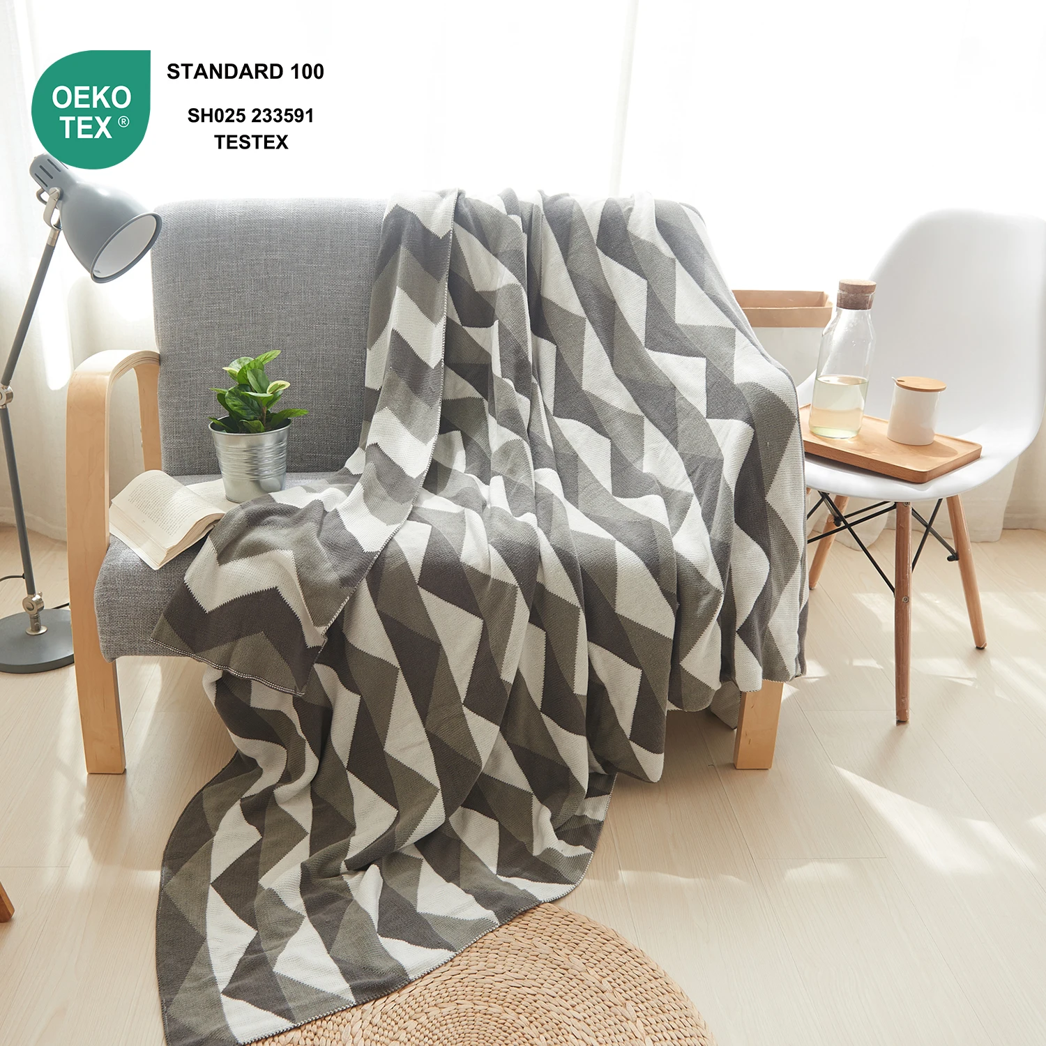 Home Decoration Bed Custom 100% Cotton Knitted Throw Blanket for sofa
