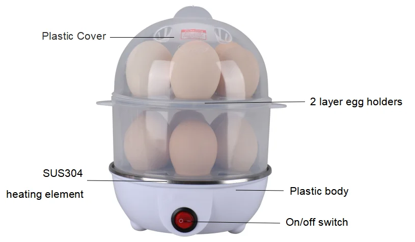 Quick 220V Plastic Double Layer Boiler Steamer Egg Cooker