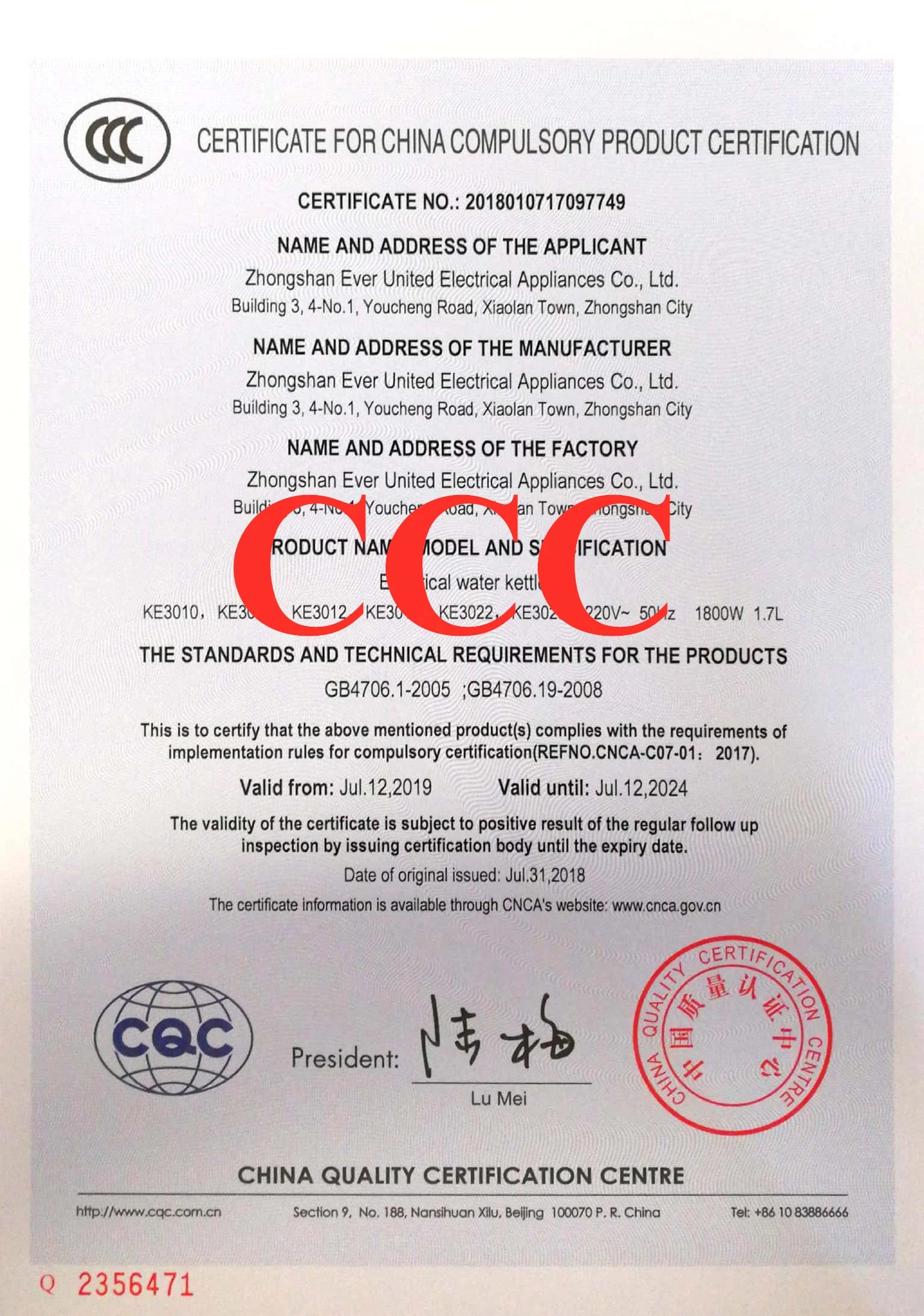 With boil-dry protection | 40' container qty | 12480pcs | |