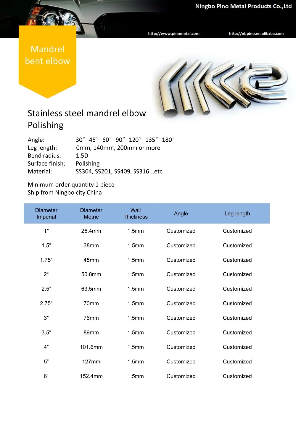 3" | 76mm | 1.5mm | Customized | Customized |