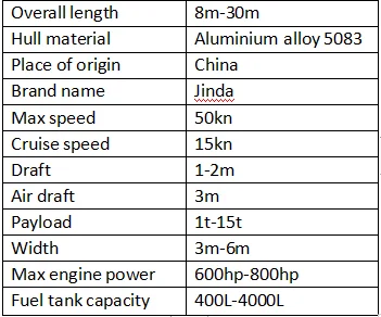1.Who are we? We are Longkou Jinda Shipbuilding Co., Ltd. And we are located in Longkou city, a beautiful and rich seaport city in the east of Shandong Province, China. We established in 1999, and we mainly sell our products in domestic China, small part to Middle east and Southeast Asia. Our sales turnover is about USD per year. 2.What is our main trade terms? How can we guarantee quality? Our main trade terms are FOB,CFR and CIF. Always a detailed pre-production discussion with customers before production; Always final Inspection before shipment; 3.What can you buy from us? Aluminum Boat/Ship/Yacht, normally not so big cargo vessels. 4..What is your payment terms? Normally 30% before production, the rest before shipment. And LC is possible. 5.Why should you buy from us not from other suppliers? Our company has long history to produce boats/ships/yachts. We have well experienced production team, design team and sales team. To offer customers high cost performance products is always our final target. And we can provide our customers with professional, reliable and fast service.
