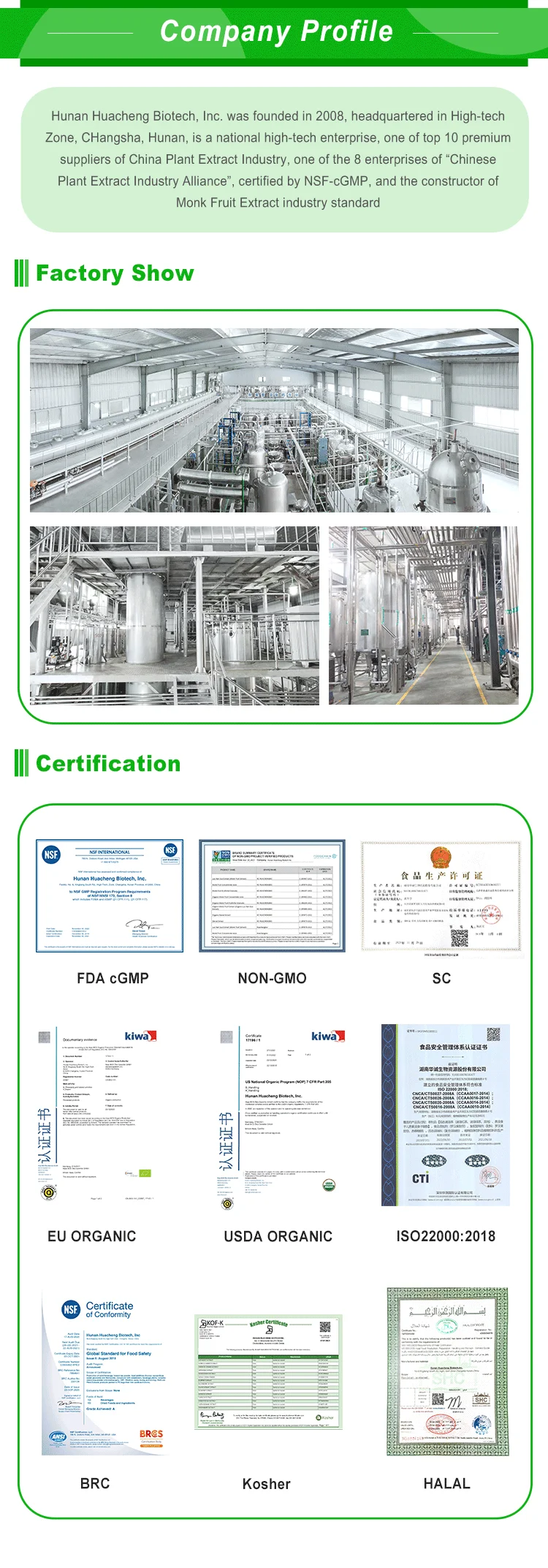 4.Certificated with NSF-GMP, ISO, HACCP, TUV, KOSHER, HALAL.