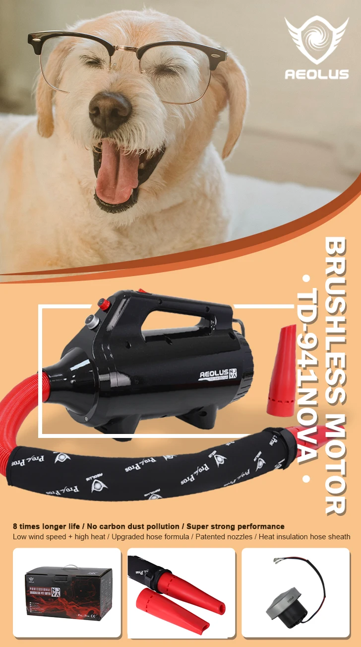TD 941 NOVA Pet Dryer AEOLUS Source factory supply Luxury Durable brushless motor Portable pet grooming dryer