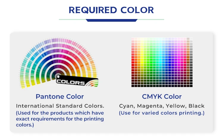 Color | Customized colors (CMYK or Pantone colors) |