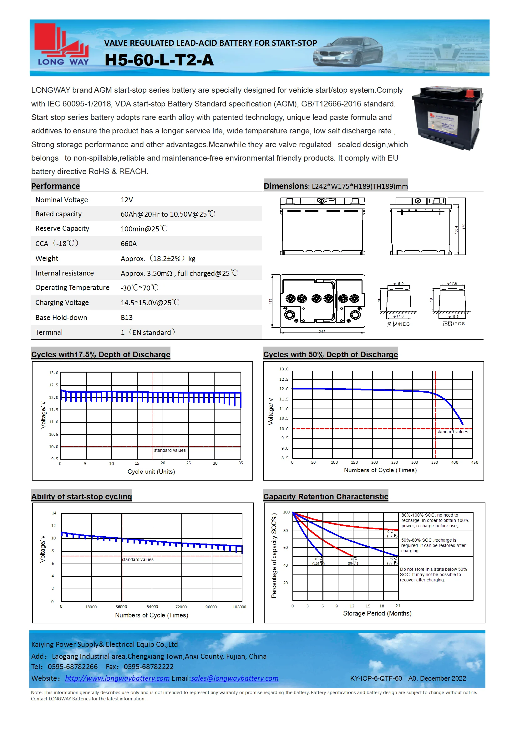 LONG WAY Battery (Kaiying Power & Electric Co., Ltd.) is a leading battery manufacturer based in Quanzhou, China, with over 20 years of experience. Our two modern production plants cover over 100,000 square meters and employ over 1,000 skilled professionals. We are among China's top battery producers with a daily production capacity of 80,000 batteries and an annual capacity of 2 million KVAH.