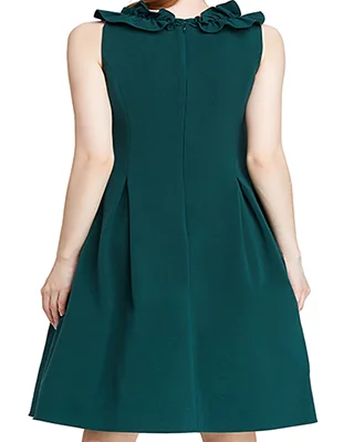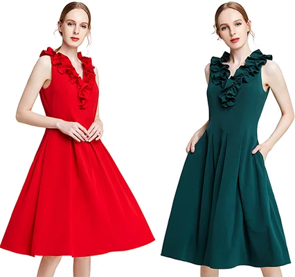 V Neck,Ruched Ruffle Along Neck, Inverted Pleats For Slim Waistline,Front /Back Princess Seams,Fitted Bodice,Retro Classic Cut.Fashion & Casual,Slim & Tall,Beautiful And Tasteful,Elegant And Gentle,Simple And Elegant