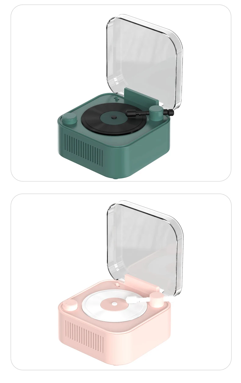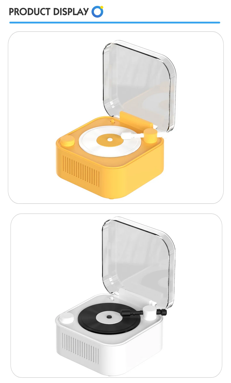 * 1.Takes You Back to the Old Time: This old fashioned classic style Bluetooth speaker designed to imitate a 1950s vintage phonograph, With a modern color scheme, take the two-element are integrated, bring you a visual and spiritual impact, takes you back to the old-time just like as 1950s. * 2.A Nice Decoration: It doesn't just look like a gramophone, the fake vinyl record spins slowly when the music is played, like a real gramophone playing the vinyl record, it can be a nice decorations in the living room or bedroom at home. The selection of high-quality materials, exquisite design, not only attractive appearance, but also excellent quality.
