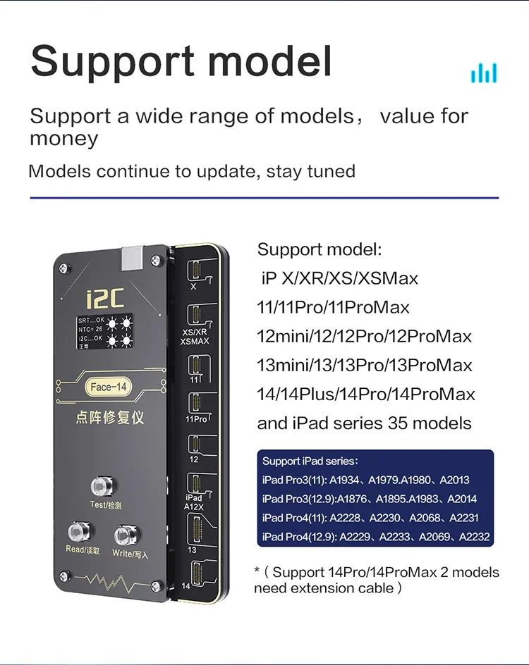 3rd Generation i2C V8i Programmer Dot Projector Flex Cable For iPhone X / XS / XR / XS Max / 11 / 11 Pro / 11 Pro MAX /12/12P/12 PRO MAX/12 MINI/iPad Pro 34 Face ID Not Working Repair