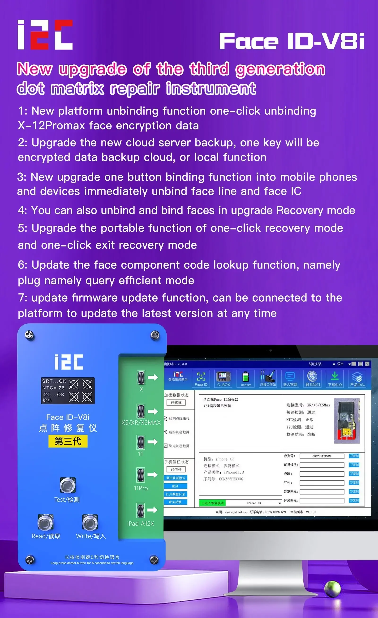 I2C improve Face ID V8i flex cable for iPhone X to iPhone 12 Pro Max,iPhone Dot Matrix flex cable for 3rd Generation i2C Face ID V8i programmer, read and write dot matrix flex cable by i2C V8i Face ID programmer, and then repair the iPhone Face ID higher and lower problems by replacing the flex cable.