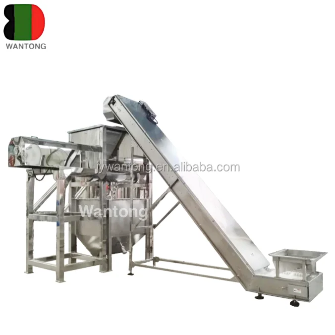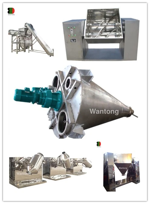 The machine is full stainless steel mixer, horizontal ribbon mixer shaft is arranged on the transmission screw blade, the internal spiral material from the discharge port conveying direction, the external spiral material to the discharge port conveying direction. Under the convective motion of the double helix belt, a low power and high efficiency mixing environment is formed.