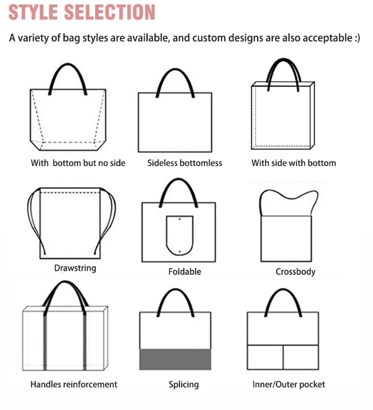 *Usage | Recycle bag, shopping bag, wine bag, tote bag, packing bag, gym bag, gift bag, toy bag, phone bag, promotion bag, storage bag etc. | |