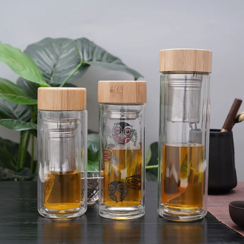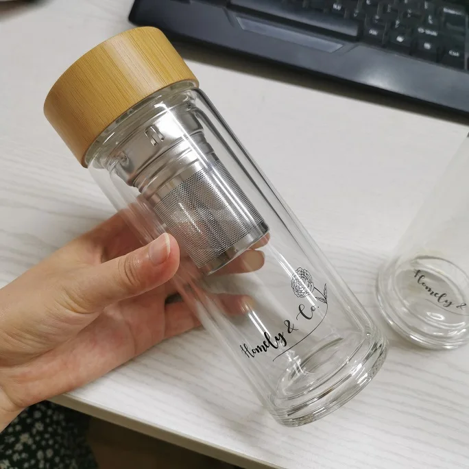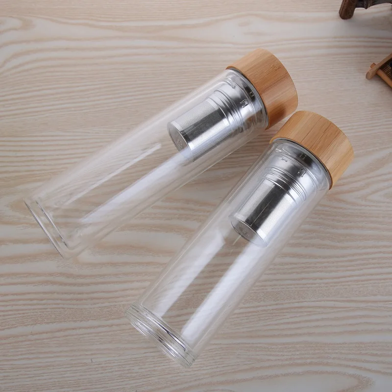 Name | Amazon New Products 12 oz 16 oz Double wall Glass Portable Clear Sports Water Bottle Tea Fruit Infuser Tumbler With Bamboo Lid |