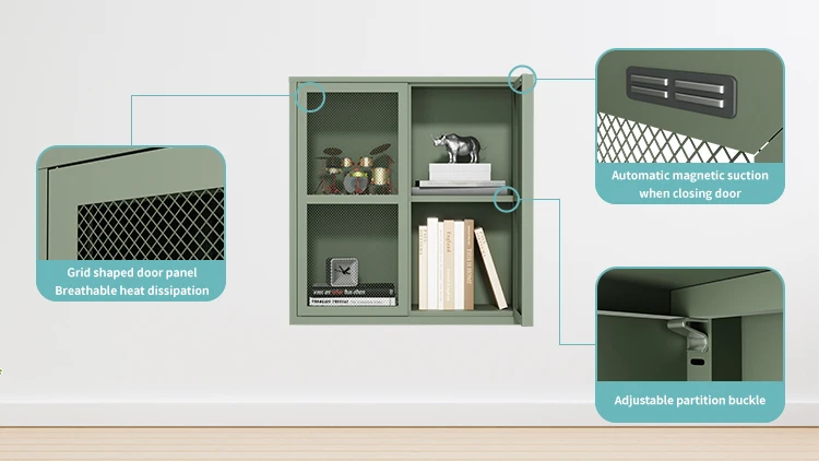 Wall mounted metal storage cabinet bookcase home office white white bookcase for living room display cupboard with 2 mesh door