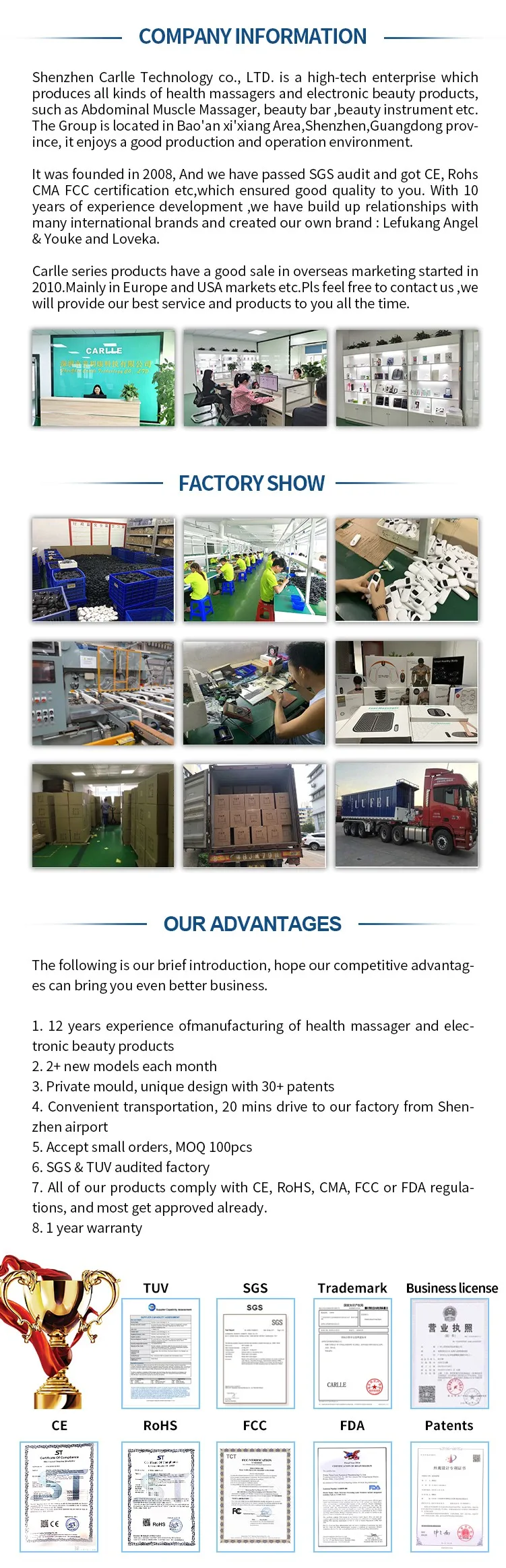 1. OEM&ODM is acceptable. 2. Customers' design is highly welcomed. 3. Fast time delivery and production. 4. Patent products with competitive price. 5. Small/ trial orders are welcomed.
