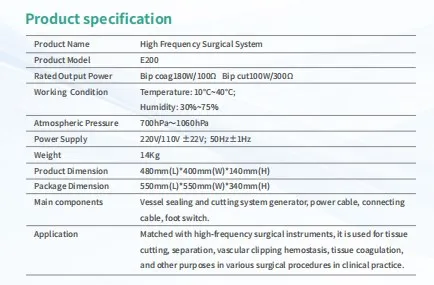 IN E200 Electrosurgical System Electrosurgical Device Electrothermal Surgical Unit High Frequency Electrocautery Machine