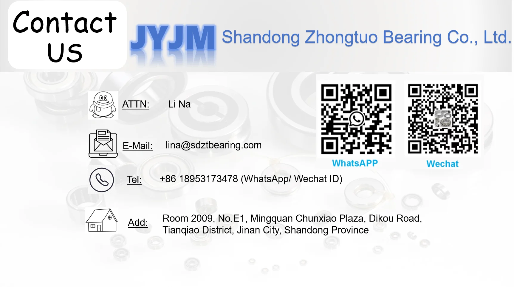 A: We are a comprehensive factory - Zhongtuo Bearing Co., Ltd., integrating production, trade, investment, and sales.