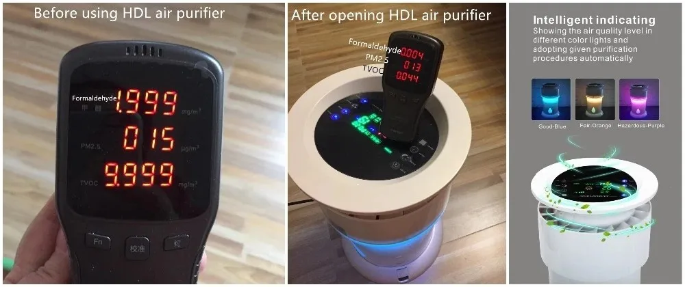 HDL WATER air purifiers use WATER dust collection technology that effectively remove 99.9% of pollutants such as Particulate Matter (PM 2.5), dust, pet hair, formaldehyde, cigarette smoke and other pollutants. The high purification capacity of the filters purifies the room instantly.
