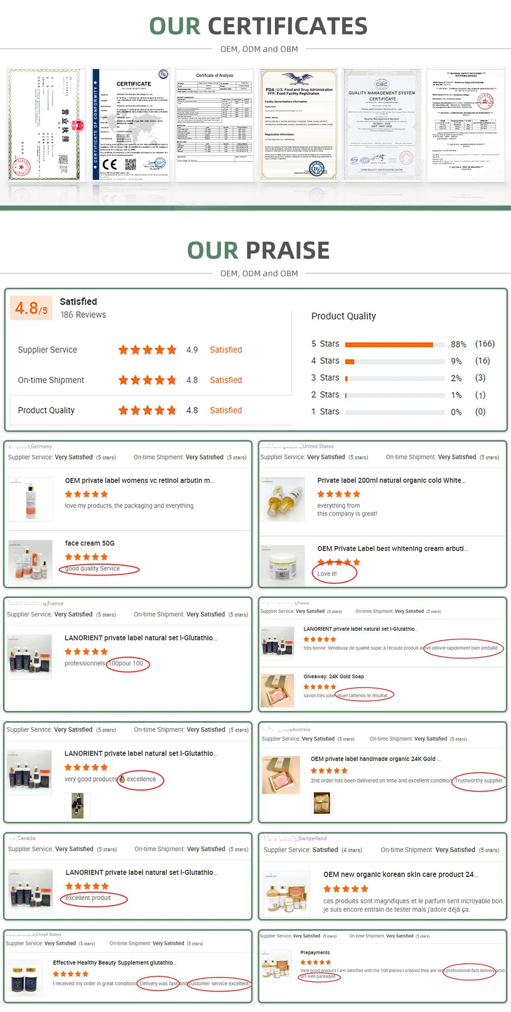 A: We mainly produce natural and herbal skin care products with 15 years of production experience. We have: GMP&ISO certification + 30 professional R&D engineers + 2000 automated production lines + existing mature formula + 3000㎡ factory scale + rich experience in private label customization