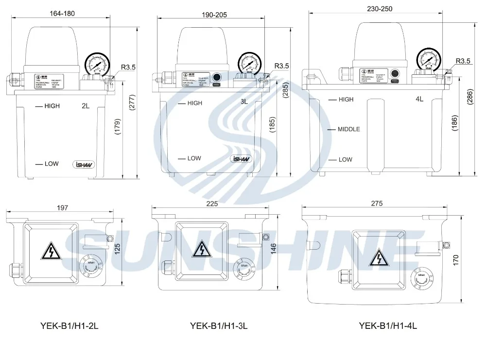1.YEK-B1P1 & YEK-H1P1 are equipped with pressure switch.