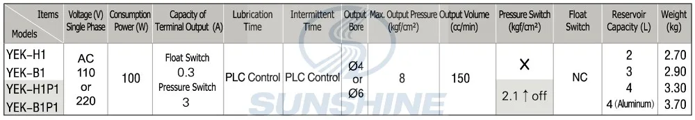 2.YEK-B1 & YEK-B1P1 are equipped with "FEED" button , which has a function of forced lubrication.
